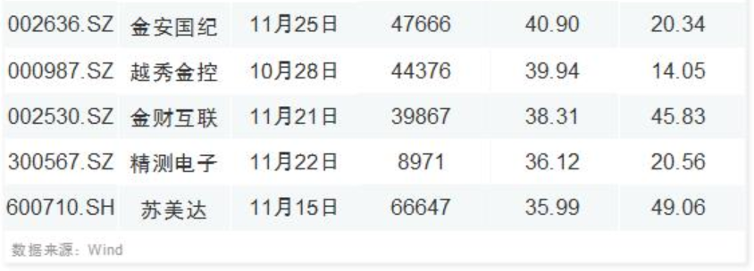 截止11月中旬解禁市值靠前公司如下: