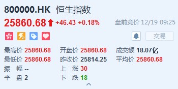 恒生指數(shù)開(kāi)盤(pán)漲0.18%,報(bào)25860.68點(diǎn)。國(guó)企指數(shù)漲0.04%,報(bào)10234.45點(diǎn)。紅籌指數(shù)漲0.2%,報(bào)4217.54點(diǎn)。大市盤(pán)前成交18.07億港元。隔夜美股微升,港股ADR偏軟。