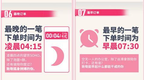 在辦公室下單的時間也反映了白領(lǐng)們的加班情況。數(shù)據(jù)顯示,北京、上海、廣州、深圳等一線城市毫無懸念的榜上有名,最晚下單時間是凌晨04:15,最早是早晨07:30。為了出方案、趕項(xiàng)目和完成KPI,他們披星戴月,好在還有數(shù)不清的咖啡和紅牛默默陪伴。
