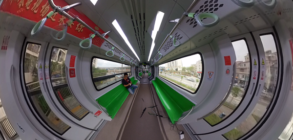 比亞迪云軌可廣泛用于一二線城市的交通接駁線、加密線,三四線城市的交通主干線,以及旅游景區(qū)的觀光線等場景。結(jié)合云軌視頻回傳等重點業(yè)務(wù)場景,云軌車內(nèi)安裝了360球機攝像頭,通過5G網(wǎng)絡(luò)傳輸實時回傳拍攝到的全景視頻畫面。遠(yuǎn)程操控人員借助VR眼鏡及大屏幕觀看云軌高清視頻畫面,以第一視角控制和監(jiān)測云軌運行狀況,能在第一時間發(fā)現(xiàn)異常,迅速做出反應(yīng),預(yù)防交通危險。