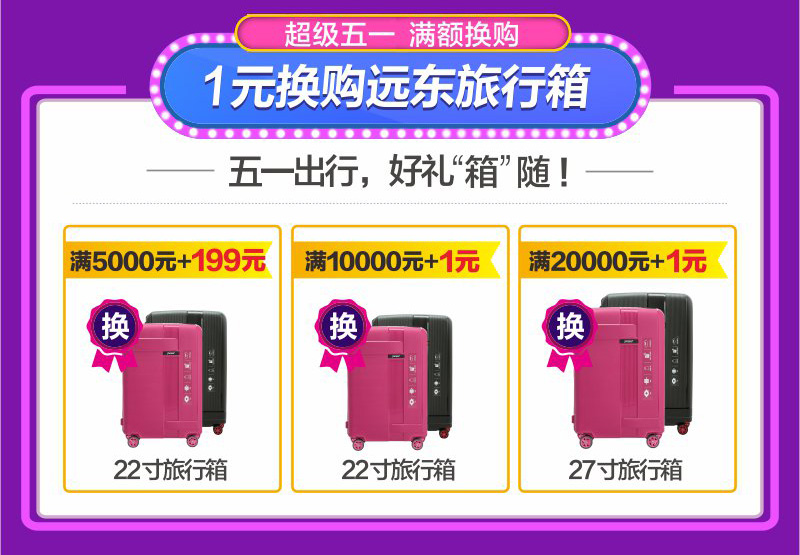 5、1元換購FAREAST旅行箱:活動期間,顧客凡在店內(nèi)下定實(shí)付(多個訂單可累積)滿5000元可加199元換購22寸 FAREAST旅行箱;滿10000元可加一元換購22寸 FAREAST旅行箱,滿20000元加一元換購27寸FAREAST旅行箱,送完即止。