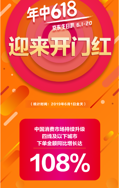 深圳新聞網(wǎng)2019年6月3日訊 6月1日零時(shí)剛過,京東后臺(tái)銷售數(shù)據(jù)顯示訂單量就呈現(xiàn)出井噴狀態(tài),一年一度的京東618全球年中購物節(jié)正式開啟。京東大數(shù)據(jù)顯示,6月1日全天四線及以下城市下單金額同比增長達(dá)108 %。
