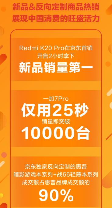 Redmi K20 Pro特地選擇在京東618期間首銷,其中還針對京東的用戶推出了京東獨(dú)家版本,而Redmi K20 Pro的整體銷售成績也表現(xiàn)不俗,在開售2小時(shí)就拿下新品銷量第一;而在京東618期間推出的一加7Pro,僅用了25秒就銷售上萬部。
