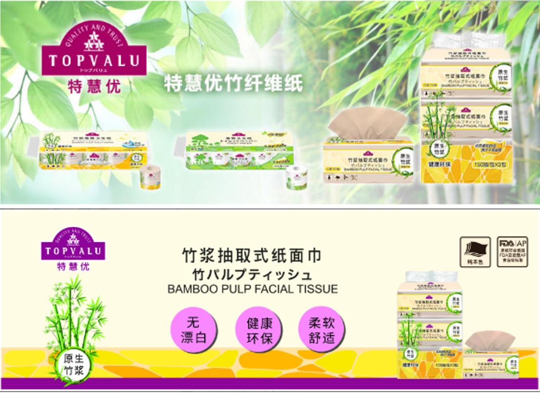 永旺始終對環(huán)境保護(hù)高度關(guān)注,開發(fā)健康、環(huán)保的、讓顧客放心使用的商品一直是永旺的目標(biāo)。正是出于這樣的考量,永旺自有品牌TOPVALU(特慧優(yōu))推出了竹漿抽取式紙面巾等系列的環(huán)境友好型商品。由于該商品做到了對環(huán)境無污染,對人體無危害,還獲得了“2018年中國零售自有品牌評選”的“綠色產(chǎn)品獎(jiǎng)”。