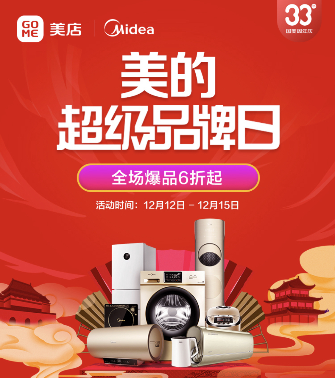 12月12日-15日,33周年生日之際,國美與海爾再度攜手,國美美店帶來海爾超級品牌日活動,涵蓋了海爾冰箱、洗衣機、空調(diào)、電視、廚房衛(wèi)浴等多個品類豐富產(chǎn)品,多重優(yōu)惠福利、六大承諾保障、延保清洗服務(wù)。