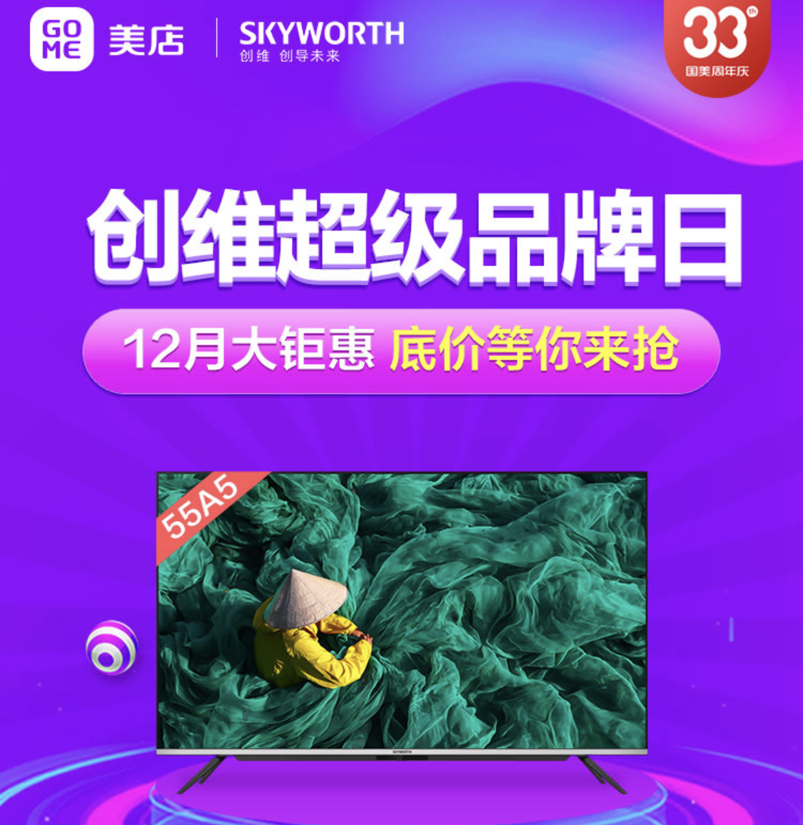 國美33周年慶期間,創(chuàng)維超級品牌日也在國美美店同步開啟,相比于其他品牌,創(chuàng)維電視沒有那么多活動,僅僅采用了價格直降的方式,簡單粗暴,直接購買即可。