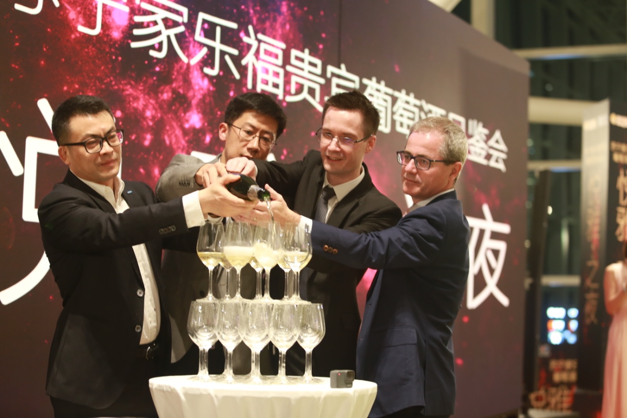 當(dāng)天,家樂(lè)福中國(guó)區(qū)副總裁、華南區(qū)總裁薛鵬,蘇寧易購(gòu)華南區(qū)執(zhí)行副總裁、深圳大區(qū)總經(jīng)理戴馮軍,家樂(lè)福中國(guó)區(qū)商品副總裁馬邱(Matthieu HOUSSAIS),杭州鼎世總裁樂(lè)安華(Erwann LEMOIGNE)出席了活動(dòng)并致辭。現(xiàn)場(chǎng)展出的100多種葡萄酒,大部分來(lái)自于法國(guó),價(jià)格從幾十元至幾萬(wàn)元,滿足不同層次的消費(fèi)需求。