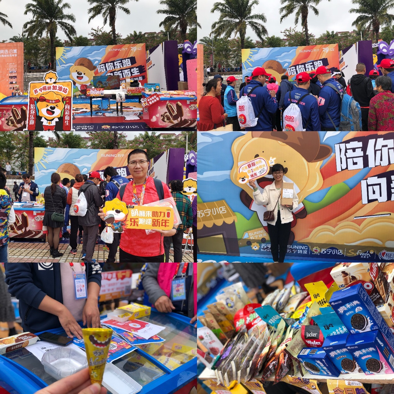 賽事由上午7:30持續(xù)到下午13:30。不到3小時(shí),終點(diǎn)處迎來(lái)了第一名沖刺!參賽者李棟興以2:25:13的優(yōu)異成績(jī)打破賽會(huì)紀(jì)錄,獲得了2020大鵬萬(wàn)科新年馬拉松的冠軍,現(xiàn)場(chǎng)賽道周邊滿是為他歡呼的聲音,相信這是他送給自己的最好的新年禮物。上午10點(diǎn)之后,其他參賽者也陸續(xù)抵達(dá)終點(diǎn)——大鵬文化廣場(chǎng),廣場(chǎng)內(nèi)設(shè)置了參賽者冰水沐足區(qū),更衣室,包裹領(lǐng)取處,還有各種贊助商的趣味互動(dòng)區(qū),已經(jīng)完成比賽的跑者可以在此處休息放松。其中,蘇寧在終點(diǎn)處設(shè)置了免費(fèi)美食領(lǐng)取,搖一搖抽大獎(jiǎng)等趣味互動(dòng),吸引了眾多觀眾前來(lái)打卡。(通訊員/黃敏君)