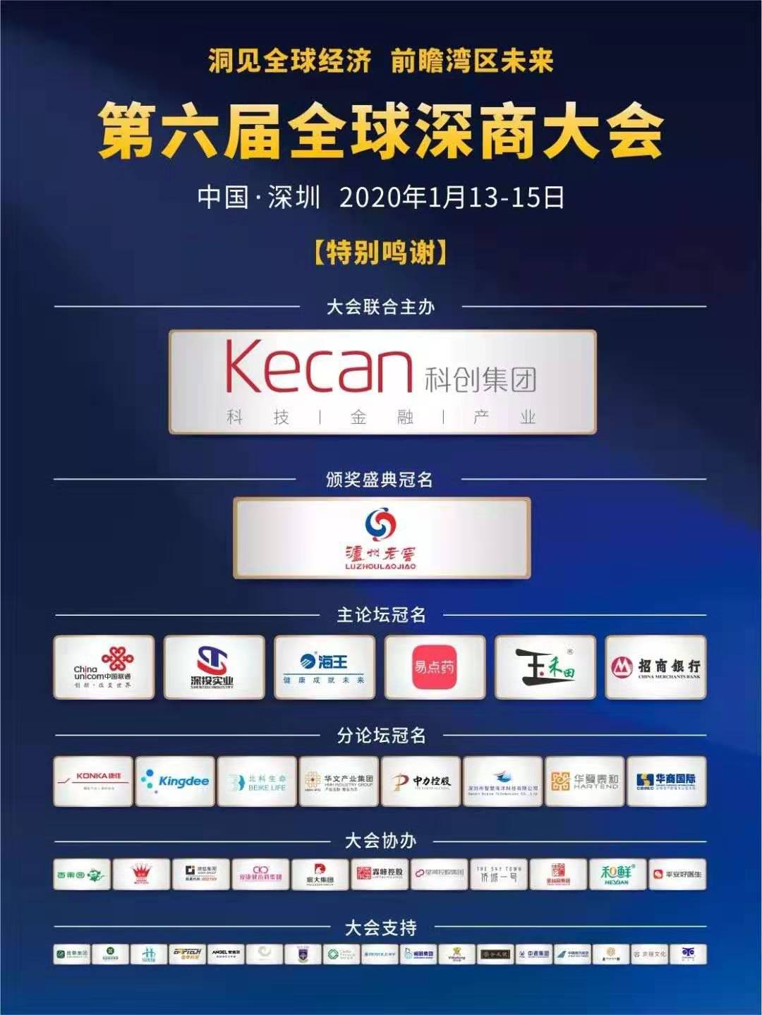 深圳新聞網2020年1月14日訊 1月13日晚,由深圳市商務局指導,深圳市深商總會、深圳市商業(yè)聯(lián)合會主辦,順德區(qū)人民政府聯(lián)合主辦,瀘州老窖股份有限公司冠名的第六屆全球深商大會頒獎盛典以及深投實業(yè)集團(深圳)有限公司冠名的“洞見全球經濟,前瞻灣區(qū)未來”論壇在保利劇院開幕。