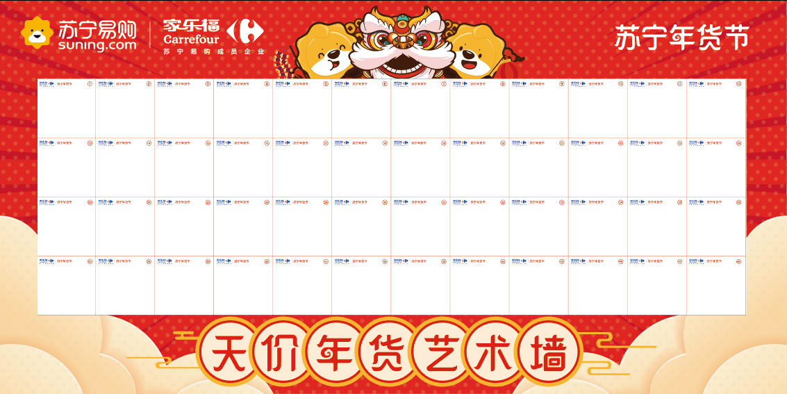家樂福華南區(qū)相關(guān)負(fù)責(zé)人表示,“天價(jià)年貨藝術(shù)墻”結(jié)合當(dāng)前最受關(guān)注的天價(jià)藝術(shù)這個(gè)熱門話題,融入春節(jié)傳統(tǒng)中國(guó)人講究的福氣、運(yùn)氣等元素,讓參與者通過(guò)深度互動(dòng),享受寓購(gòu)于樂的購(gòu)物體驗(yàn)。
