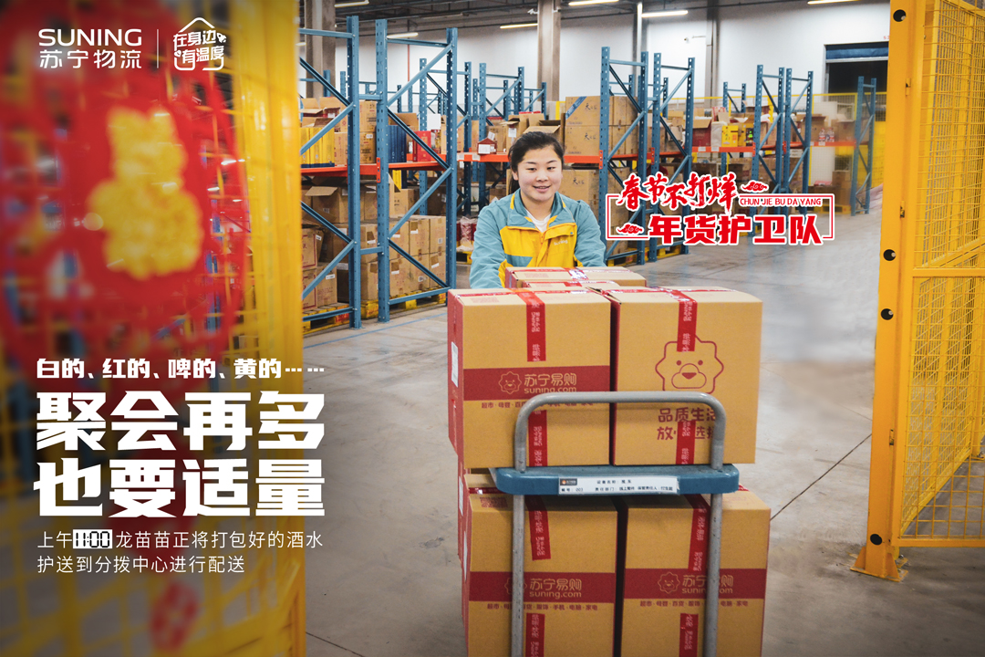 日前,蘇寧官宣春節(jié)物流不打烊,蘇寧物流倉火箭哥的一天同步曝光,名副其實(shí)“年貨護(hù)衛(wèi)隊(duì)”。