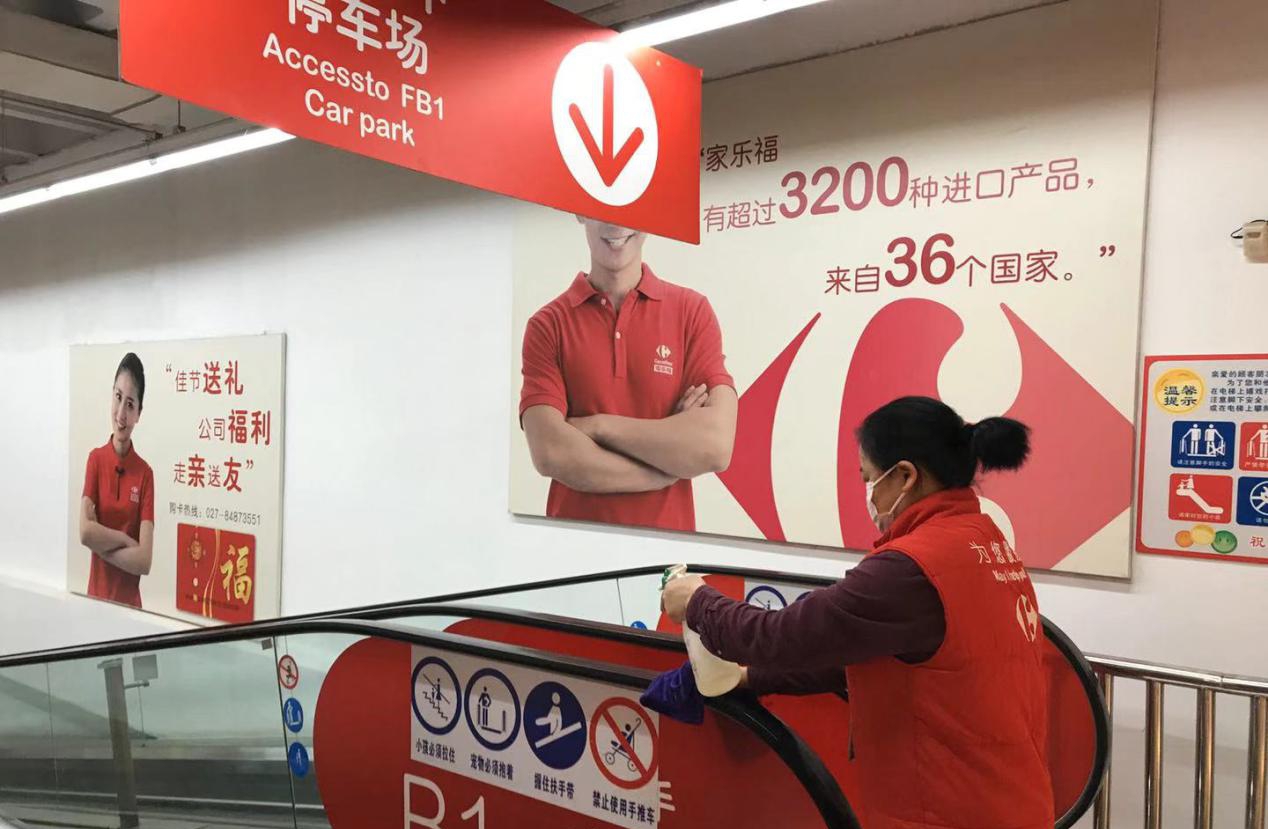 為確保健康、安心的購(gòu)物環(huán)境,家樂(lè)福加強(qiáng)各項(xiàng)安全防范措施,員工每日測(cè)體溫戴口罩上崗,地面、自動(dòng)扶梯把手、購(gòu)物車(chē)、購(gòu)物籃每2小時(shí)消毒一次,廁所每1小時(shí)消毒一次。以武漢為例,春節(jié)期間門(mén)店清潔消毒已消耗1000瓶消毒液、700瓶洗手液,員工嚴(yán)格遵守口罩更換程序,共消耗近20000個(gè)口罩。