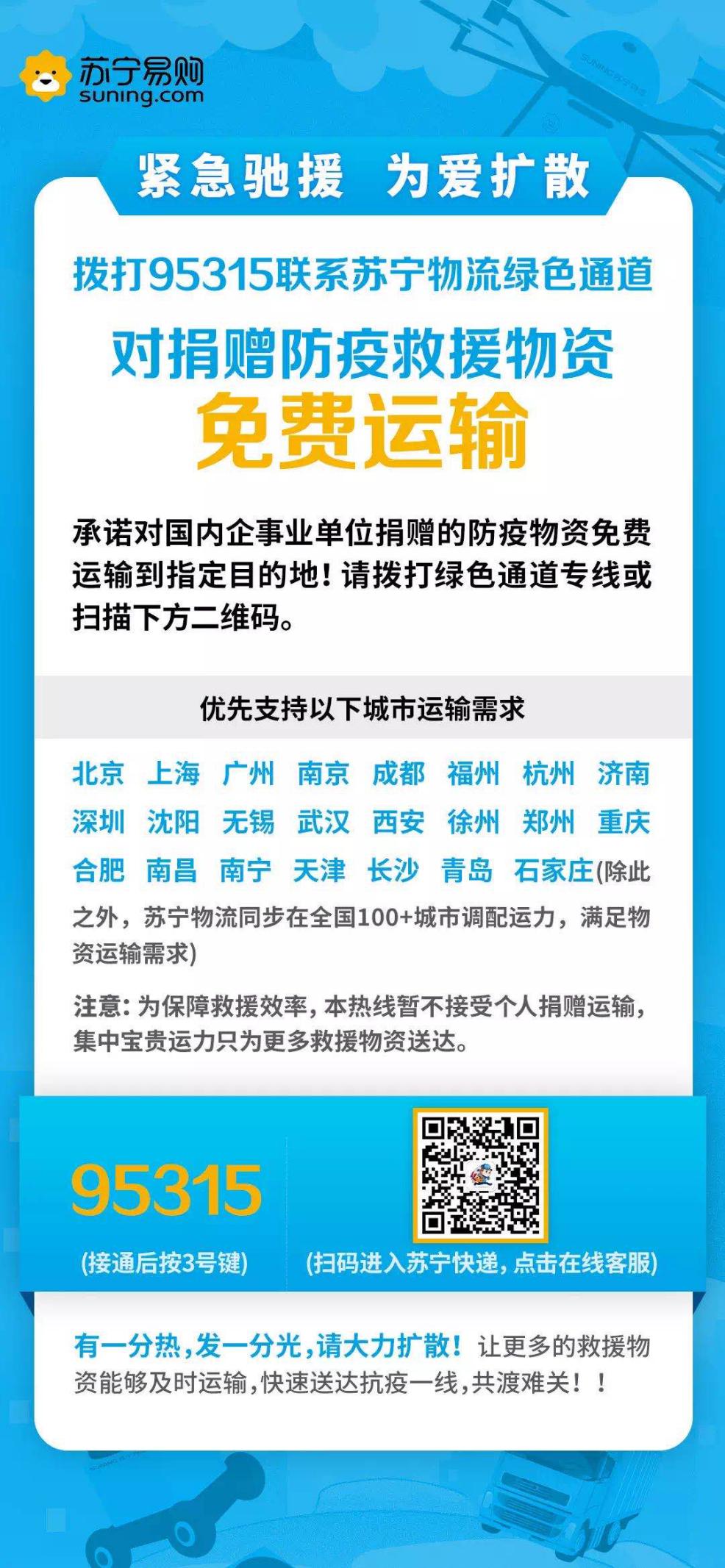 一方有難,八方支援。除夕夜的聲援只是開始。大年初一下午4點,蘇寧物流正式開通“綠色通道”,接受地方政府、公益組織等對武漢地區(qū)的援助物資運輸需求,第一時間將援助物資配送至抗疫前線。通道一經(jīng)開通,需求立即涌入。