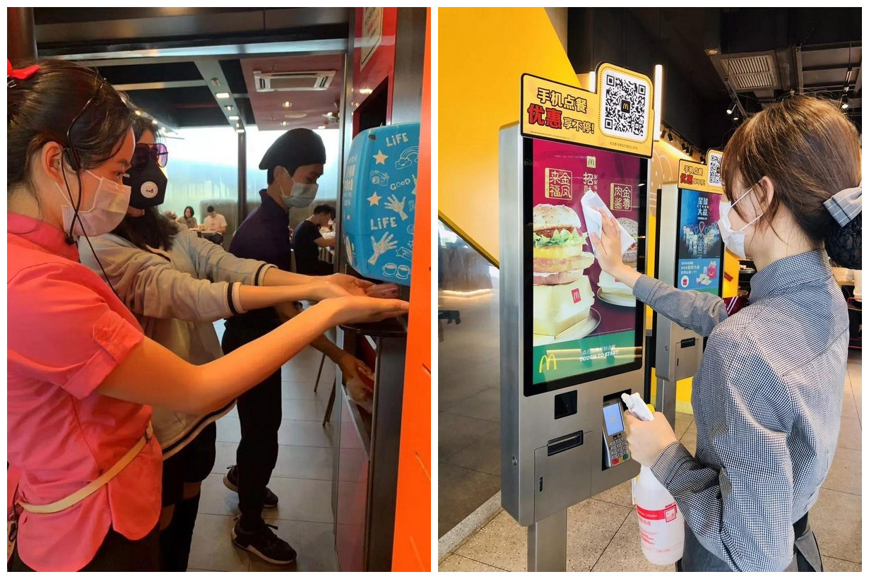 據(jù)了解,目前全國所有的麥當(dāng)勞餐廳啟動上班員工測溫流程,并提高員工洗手消毒頻次,全國餐廳全員佩戴口罩。在餐廳為顧客提供免洗洗手液,對所有餐廳的通風(fēng)系統(tǒng)和顧客常接觸的設(shè)施,強(qiáng)化消毒并增加頻次,包括大門把手、自助點餐屏、樓梯扶手、柜臺臺面、取餐區(qū)、桌椅、餐盤、兒童椅、兒童樂園等。