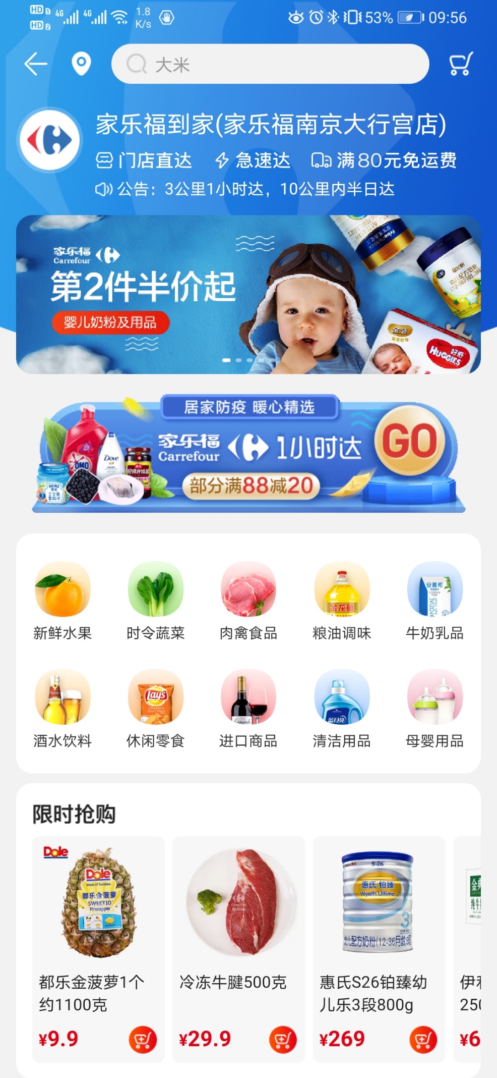 在去年剛剛完成了全場景布局的蘇寧此次則是多點作戰(zhàn),“一小時場景生活圈”近在身邊的優(yōu)勢充分發(fā)揮。除了蘇寧易購主站,蘇寧小店深耕社區(qū),采取“線上下單,線下取貨“的蘇寧菜場模式,銷售規(guī)模同比增長超過50%。線上蘇寧超市業(yè)務也呈現翻倍增長。蘇寧到家業(yè)務規(guī)模同比增長近4倍。家樂福春節(jié)期間銷售額增速同行業(yè)領先。