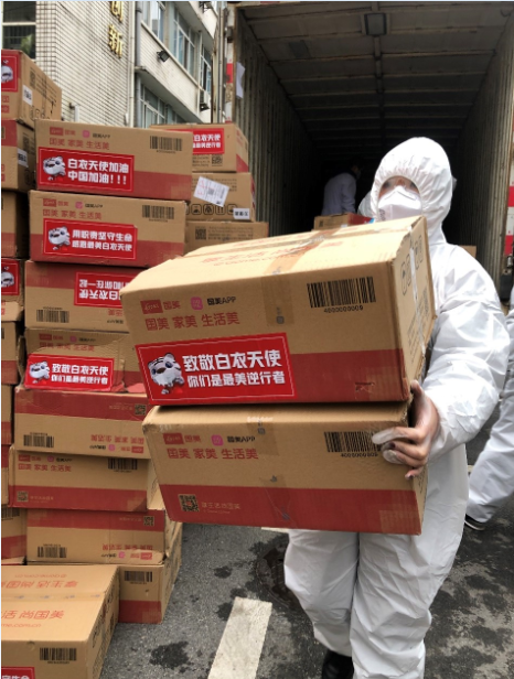 武昌醫(yī)院捐贈(zèng)物資接收負(fù)責(zé)人在接受央視新聞?dòng)浾攥F(xiàn)場(chǎng)采訪時(shí)表示,醫(yī)護(hù)人員穿上防護(hù)服會(huì)大量流汗,沒(méi)有胃口,方便食品可以改善食欲,而且更主要的是快,節(jié)約時(shí)間,幫助我們與時(shí)間賽跑,感謝國(guó)美等愛(ài)心企業(yè)的援助,他們默默無(wú)聞地提供了充足的物資和優(yōu)質(zhì)的服務(wù),幫助我們與新冠病毒抗擊,打贏這場(chǎng)戰(zhàn)役。