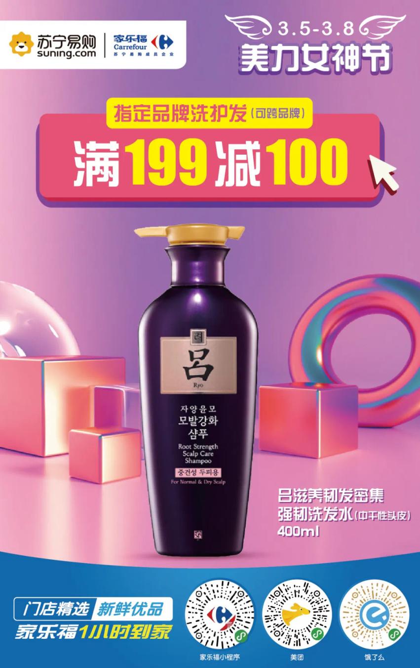 疫情期間,除了護(hù)膚,仙女們的一頭秀發(fā)也萬(wàn)萬(wàn)不能忽視!小本本記好了,家樂(lè)福指定品牌洗護(hù)發(fā)滿199立減100元。