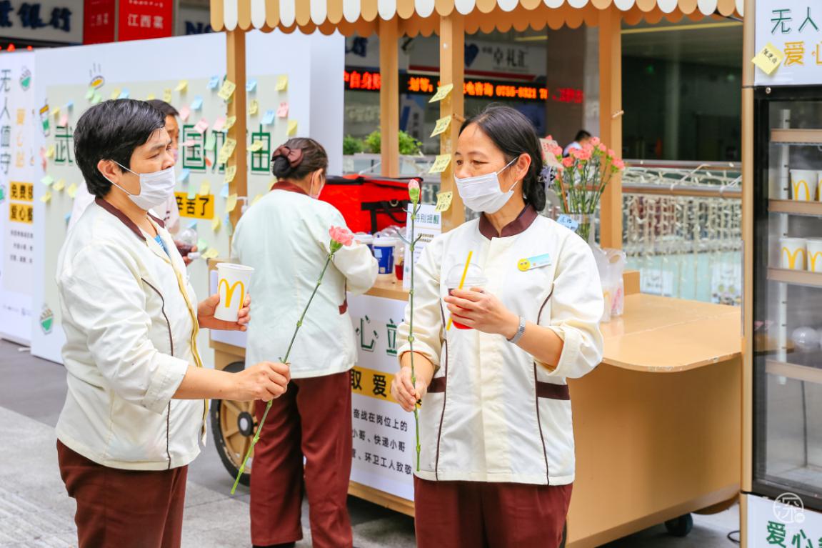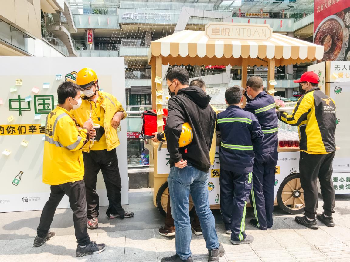3月3日至3月8日卓悅INTOWN在街頭專設了一個”無人值守愛心站”,用愛心餐車上放滿了食物冷/熱飲,專門免費贈送給快遞、外賣小哥、環(huán)衛(wèi)工人、警察、城管等一線奔波的人員。