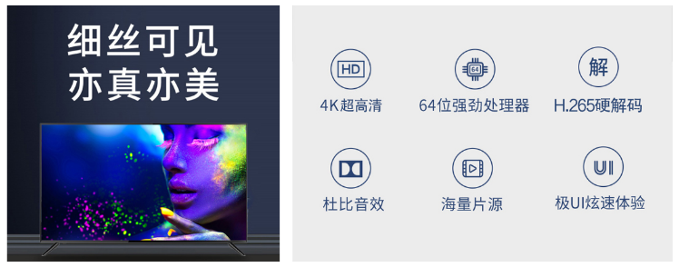 從超高性價比出發(fā),4K時尚互聯(lián)網(wǎng)智能電視——50英寸X6A也能為消費者帶亦真亦美的高性價比品質(zhì)體驗。64位強勁處理器,處理數(shù)據(jù)暢快無阻。H.265硬解碼技術(shù),采用更為先進的視頻壓縮方式,讓傳輸更加輕松,在同等傳輸條件下,拒絕模糊,呈現(xiàn)更清晰畫質(zhì)。