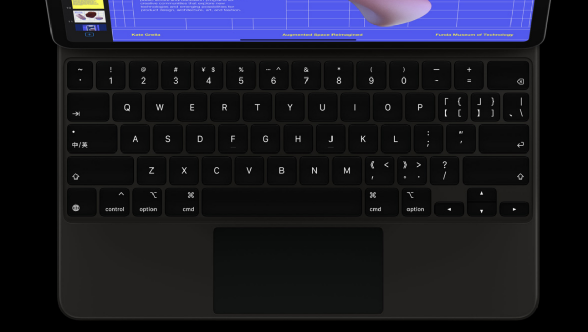 在iPadOS13中,蘋(píng)果加入了針對(duì)鼠標(biāo)的支持,另外蘋(píng)果還專(zhuān)門(mén)為這款新iPad Pro設(shè)計(jì)專(zhuān)屬的Magic Keyboard鍵盤(pán),不僅有全尺寸鍵盤(pán),采用獨(dú)立的硬質(zhì)鍵帽及一毫米鍵程剪刀式結(jié)構(gòu),帶來(lái)靈敏、舒適又安靜的輸入體驗(yàn)。還設(shè)有點(diǎn)按效果全面一致的觸控板,搭配iPad OS也能得心應(yīng)手處理辦公內(nèi)容。