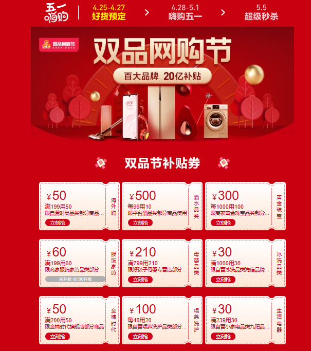 見圳客戶端·深圳新聞網(wǎng)2020年4月29日訊 貫穿整個(gè)五一假期的“雙品網(wǎng)購節(jié)”已經(jīng)開啟,蘇寧、阿里等電商平臺(tái)紛紛上線促銷活動(dòng)。消費(fèi)補(bǔ)貼怎么領(lǐng),有哪些值得買的品質(zhì)好物,還有哪些活動(dòng)值得期待?消費(fèi)回暖,買買買的熱情迎來釋放。