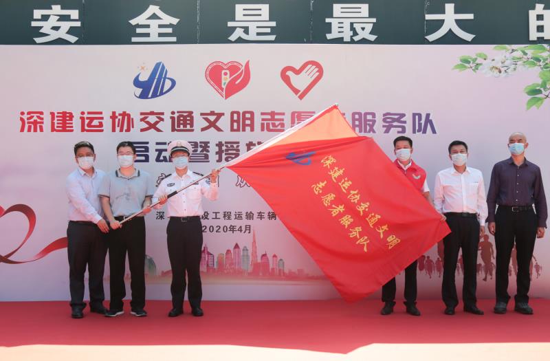 見圳客戶端·深圳新聞網(wǎng)2020年4月29日訊 為創(chuàng)建文明交通環(huán)境,引導(dǎo)行業(yè)人員自覺、主動參與志愿服務(wù)活動,用實際行動“服務(wù)社會,傳播文明”,昨日,深圳市建設(shè)工程運輸車輛協(xié)會在福田區(qū)交通警察局特勤大隊舉行了“深建運協(xié)交通文明志愿者服務(wù)隊啟動暨授旗儀式”。啟動儀式由協(xié)會黨委副書記兼紀(jì)委書記嚴(yán)勝強主持。深圳市交通運輸局、公安交警局、住房和建設(shè)局、社會組織管理局、義工聯(lián)合會領(lǐng)導(dǎo)和協(xié)會黨委領(lǐng)導(dǎo)班子、各黨支部書記、副會長、監(jiān)事長、副監(jiān)事長以及行業(yè)駕駛員代表等共計50余人出席了此次活動。