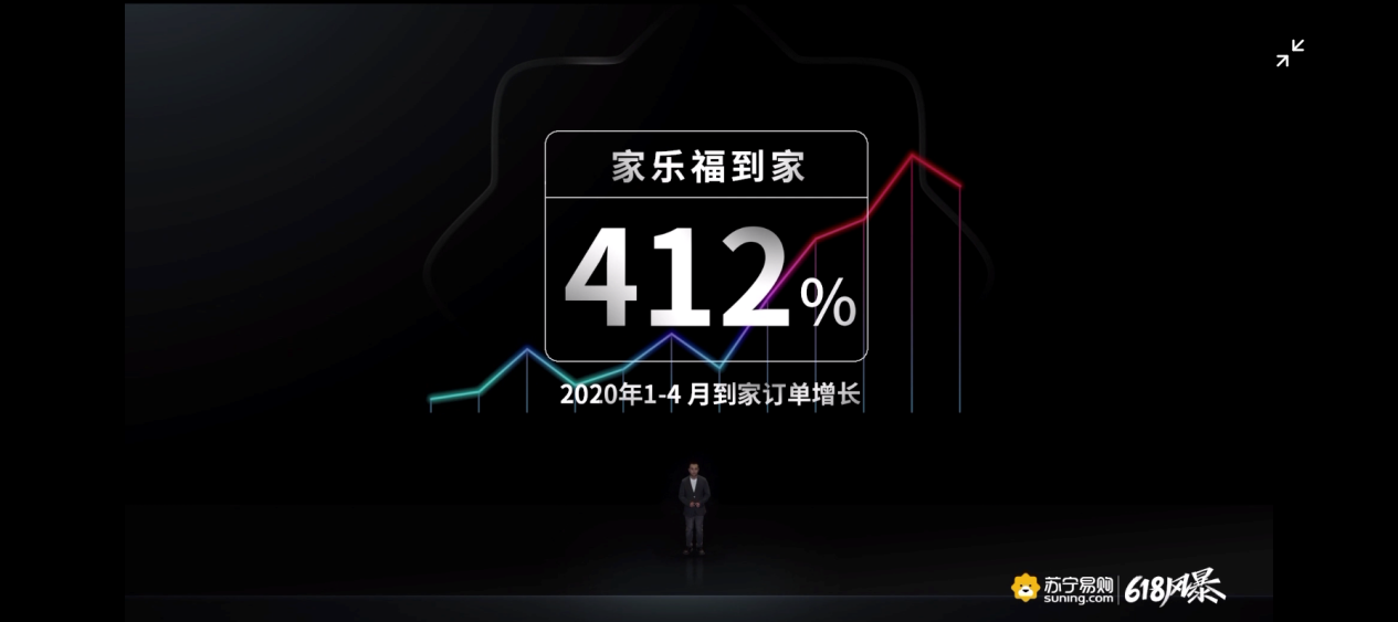 今年2月份,蘇寧家樂福到家服務上線,在全國209家家樂福門店3公里范圍內,消費者通過家樂福小程序、蘇寧易購APP、蘇寧小店APP,可以享受1小時送到家的服務。家樂福門店10公里內,實現(xiàn)了當日下午達、次日上午達。家樂福到家服務覆蓋時令生鮮、糧油調味、酒水飲料、休閑零食、母嬰用品、個護清潔、家居百貨、各種進口商品等,滿足了消費者“宅家抗疫”的生活剛需,上線后獲得消費者追捧。蘇寧易購一季度報顯示,家樂福中國到家業(yè)務銷售占比逐月快速提升,3月份占比近10%。蘇寧大數(shù)據(jù)顯示,蘇寧家樂福到家業(yè)務1-4月份同比增長412%。