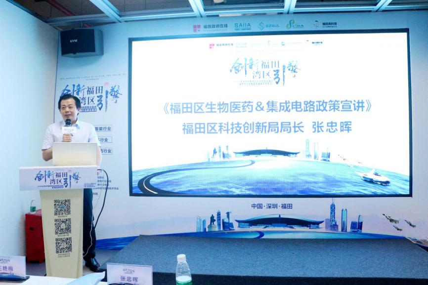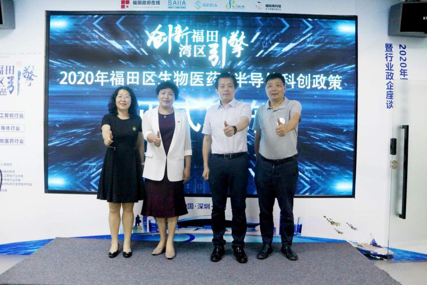 時(shí)春蕾書(shū)記、張忠暉局長(zhǎng)、周斌會(huì)長(zhǎng)、王艷梅所長(zhǎng)聯(lián)合啟動(dòng)“創(chuàng)新福田,灣區(qū)引擎”2020年福田區(qū)生物醫(yī)藥&半導(dǎo)體科創(chuàng)政策正式發(fā)布儀式。