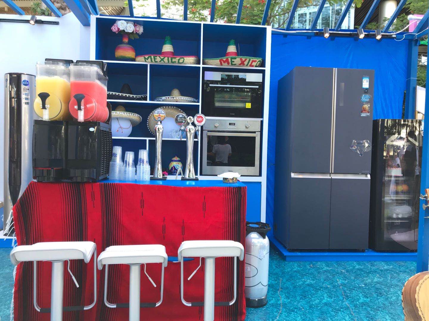 來到水吧,你可以看見冰箱、冰吧裝滿琳瑯滿目的酒水,來到現(xiàn)場(chǎng)的人們可以盲選3類基礎(chǔ)酒,自己或請(qǐng)調(diào)酒師為你調(diào)配一杯今天的lucky drink。冰箱里填充了滿滿的食材、水果,想吃各類冰沙都可以現(xiàn)場(chǎng)制作體驗(yàn)。來到廚電區(qū)域可以品嘗由海爾烤箱現(xiàn)場(chǎng)制作的小餅干,焦香酥脆讓你流連忘返。