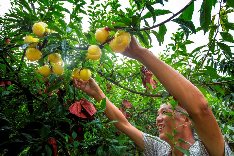 據(jù)了解,炎陵黃桃最大的優(yōu)勢是生態(tài)綠色。炎陵山地面積占全縣的86.9%,海拔1000米以上的山峰有100余座,森林近300萬畝,森林覆蓋率83.55%。在得天獨(dú)厚的環(huán)境、果農(nóng)的悉心呵護(hù)、山泉水與農(nóng)家肥的共同滋養(yǎng)下,生長在具有立體氣候特征海拔300—1200米高山上的炎陵黃桃,形成了個大、形正、色艷、肉脆、味甜、香濃的顯著特點(diǎn)。