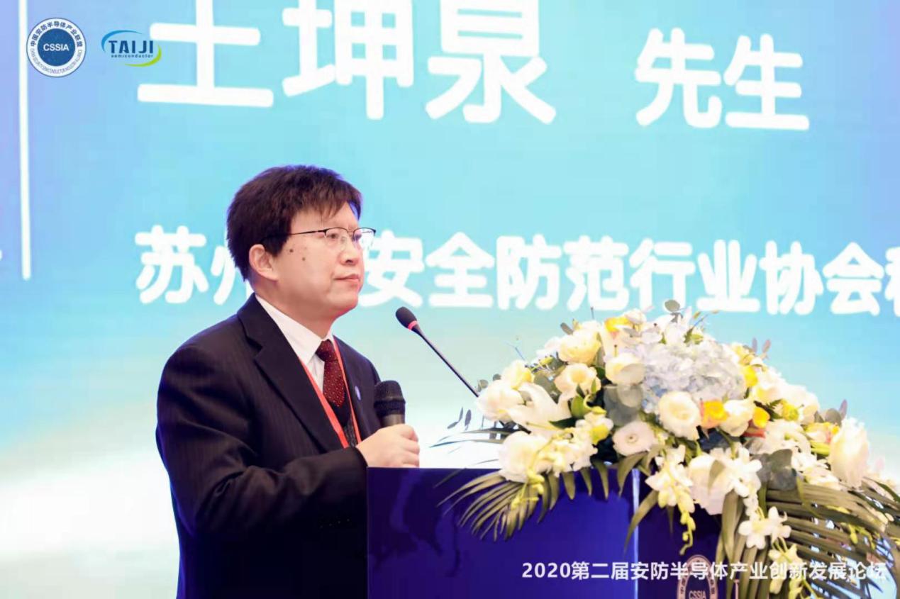 本屆論壇聯(lián)合國內(nèi)外安防與半導體主流企業(yè),推動中國安防半導體產(chǎn)業(yè)持續(xù)有序規(guī)范發(fā)展。全國安防協(xié)會合作互助聯(lián)盟首席顧問、公安部裝財局原副局長陶軍生,法國歐洲科學院榮譽院士、全國安防協(xié)會合作互助聯(lián)盟理事長、中國安防半導體產(chǎn)業(yè)聯(lián)盟主席楊金才,蘇州工業(yè)園區(qū)高端制造與國際貿(mào)易區(qū)產(chǎn)業(yè)發(fā)展局局長楊熠,蘇州市安全技術(shù)防范行業(yè)協(xié)會秘書長王坤泉,深圳市芯片行業(yè)協(xié)會秘書長吳征,臺灣資深半導體專家、中國安防半導體產(chǎn)業(yè)聯(lián)盟專家顧問、臺灣亞太高科技產(chǎn)業(yè)發(fā)展促進會副會長馮明憲,太極半導體(蘇州)有限公司董事長孫鴻偉等領(lǐng)導及嘉賓出席此次論壇。