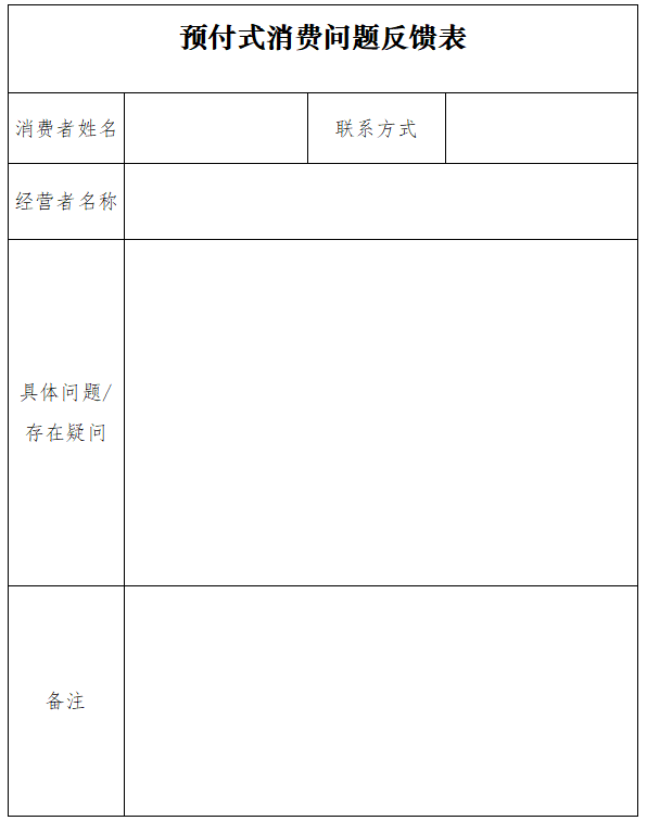 請?zhí)顚戭A付式消費問題反饋表(附件)并發(fā)送至郵箱:szcc315law@m(xù)ail.amr.sz.gov.cn。