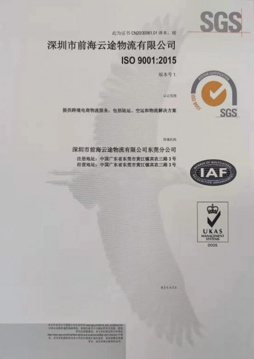 “手握國際市場三大管理體系‘通行證’,意味著云途物流各項管理工作得到高度認可,國內(nèi)外的企業(yè)競爭力將進一步提高。經(jīng)過7年的高速發(fā)展,云途物流已初步建立一套科學、合理、高效的管理體系?!痹仆疚锪髫撠熑私榻B說。