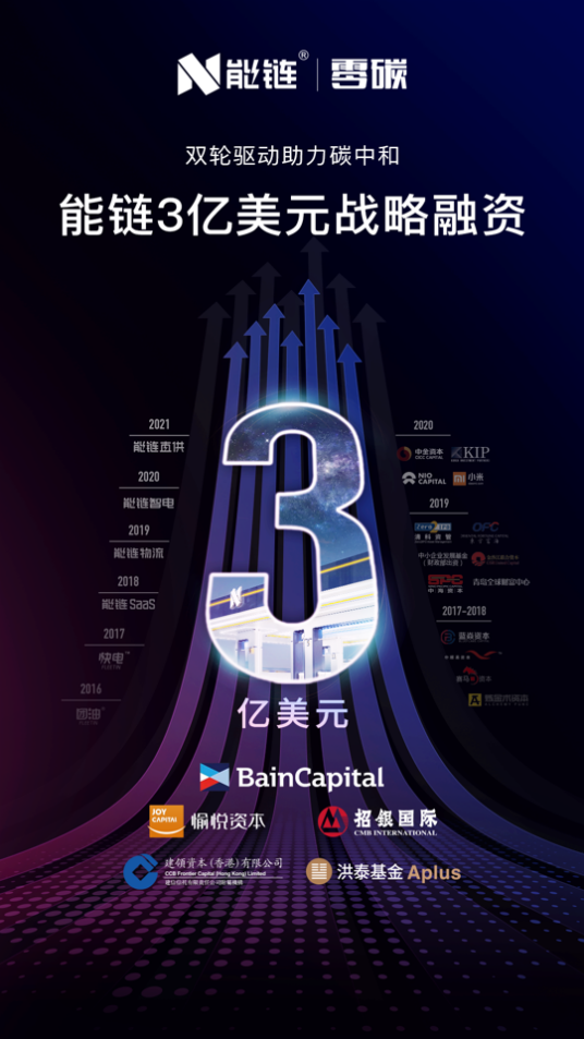 中國(guó)網(wǎng)2020年3月23日訊 昨日,能鏈宣布完成新一輪2億美元戰(zhàn)略融資,貝恩資本(Bain Capital)領(lǐng)投,老股東愉悅資本繼續(xù)跟投,華興資本擔(dān)任獨(dú)家財(cái)務(wù)顧問。綜合今年年初招銀國(guó)際領(lǐng)投的1億美元融資,能鏈本次戰(zhàn)略輪系列融資累計(jì)金額達(dá)3億美元。能鏈股東還包括中金資本、洪泰基金旗下國(guó)調(diào)洪泰、中小企業(yè)發(fā)展基金、小米集團(tuán)、蔚來(lái)資本、KIP中國(guó)等。