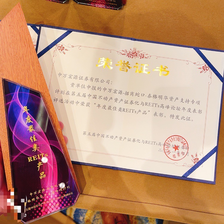 與招商蛇口申報(bào)基礎(chǔ)設(shè)施公募REITs同時(shí),由中國(guó)房地產(chǎn)業(yè)協(xié)會(huì)聯(lián)合中國(guó)REITs聯(lián)盟等主辦的“第五屆中國(guó)不動(dòng)產(chǎn)資產(chǎn)證券化與REITs高峰論壇”上,憑借申萬(wàn)宏源-招商蛇口-泰格明華資產(chǎn)支持專項(xiàng)計(jì)劃,招商蛇口獲評(píng)為“最佳原始權(quán)益人”,泰格明華項(xiàng)目獲得“年度最佳類REITs產(chǎn)品”獎(jiǎng)項(xiàng)。