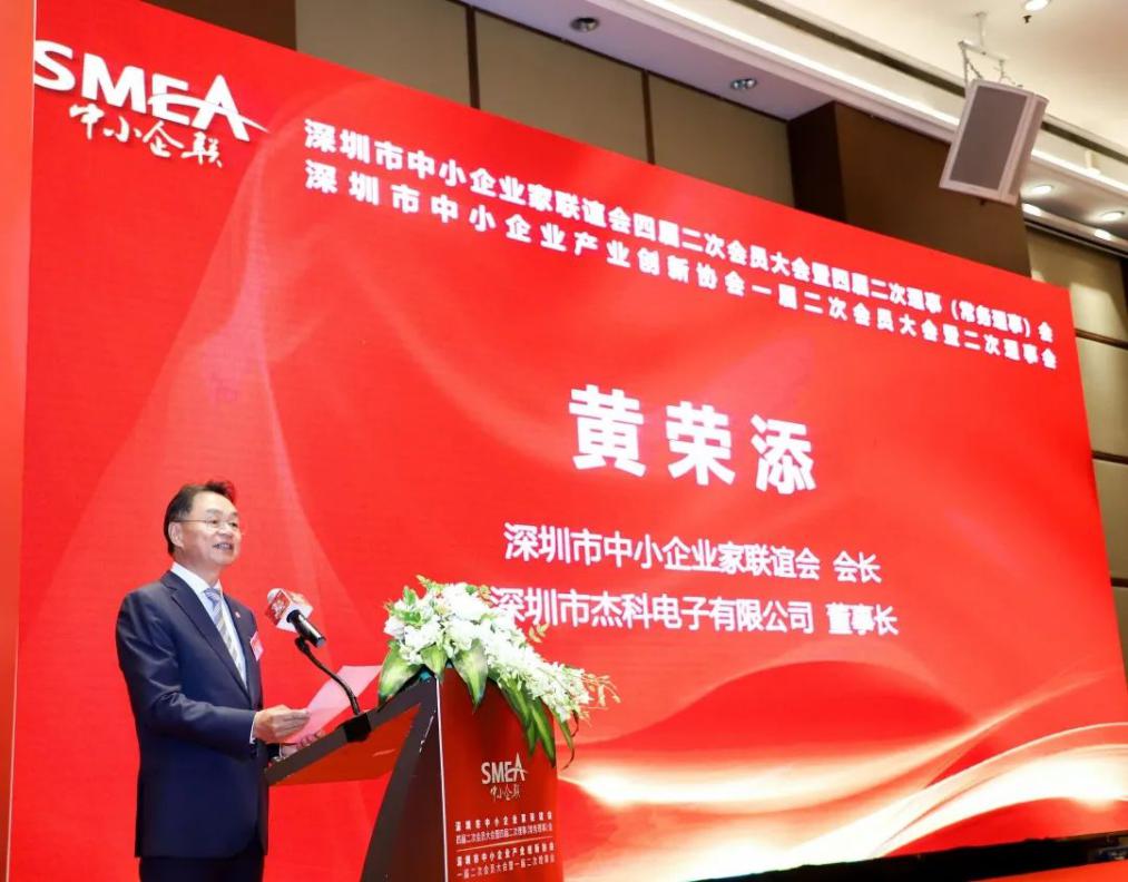 深圳市中小企業(yè)家聯(lián)誼會會長、深圳市杰科電子有限公司董事長黃榮添在致辭中首先對長期以來給予協(xié)會支持的各級領(lǐng)導(dǎo)、會員們表示衷心的感謝。深圳市中小企業(yè)家聯(lián)誼會自2010年9月20日成立以來,在市各級領(lǐng)導(dǎo)的指導(dǎo)和關(guān)懷下,已走過十年的歲月。深圳中小企聯(lián)感恩領(lǐng)導(dǎo)們的幫助與指導(dǎo),也感恩全體會員的信任與支持!黃會長表示:深圳中小企聯(lián)要緊跟時代步伐,認(rèn)清當(dāng)前形勢與任務(wù)并對協(xié)會工作提出以下幾方面要求:第一、找準(zhǔn)定位,正確履行協(xié)會職能。第二、充分發(fā)揮政企溝通的橋梁紐帶作用。第三、加強內(nèi)外資源有效聯(lián)接,擴大中小企聯(lián)平臺影響力。