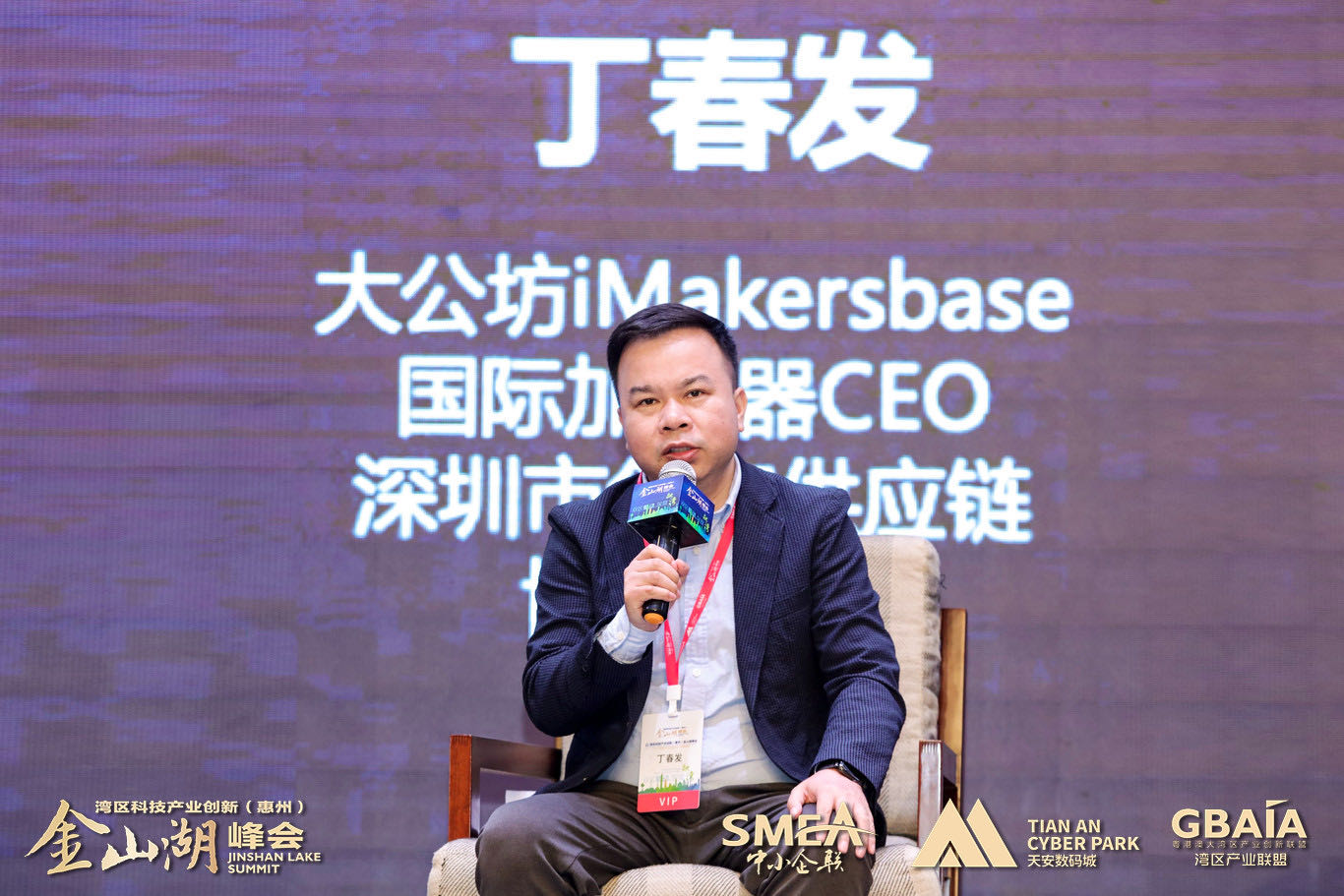 大公坊iMakerbase國際加速器CEO、深圳市創(chuàng)客供應(yīng)鏈協(xié)會會長丁春發(fā)發(fā)言