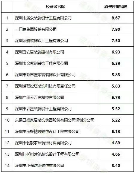 (《深圳市裝飾裝修行業(yè)消費(fèi)評(píng)價(jià)指數(shù)排名 》數(shù)據(jù):2020年4月1日-2021年3月31日 )