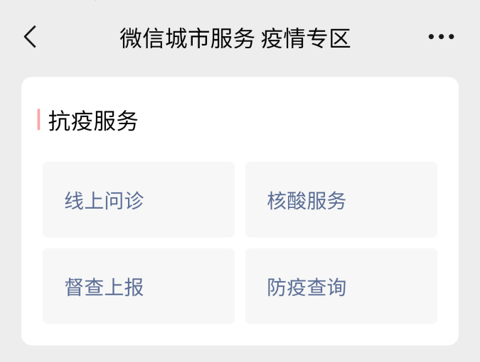 針對廣州近期疫情,微信城市服務(wù)疫情專區(qū)搭建了抗疫服務(wù)專區(qū),為廣州市民們提供三甲醫(yī)院線上問診、核酸服務(wù)、督查上報(bào)、防疫查詢等多項(xiàng)疫情相關(guān)服務(wù),助力同心抗疫,共筑防線。