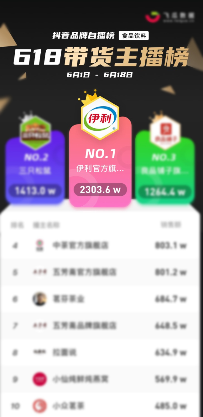 安慕希打造首個(gè)抖音乳品狂歡日,伊利品牌位居當(dāng)日食品飲料榜 TOP1