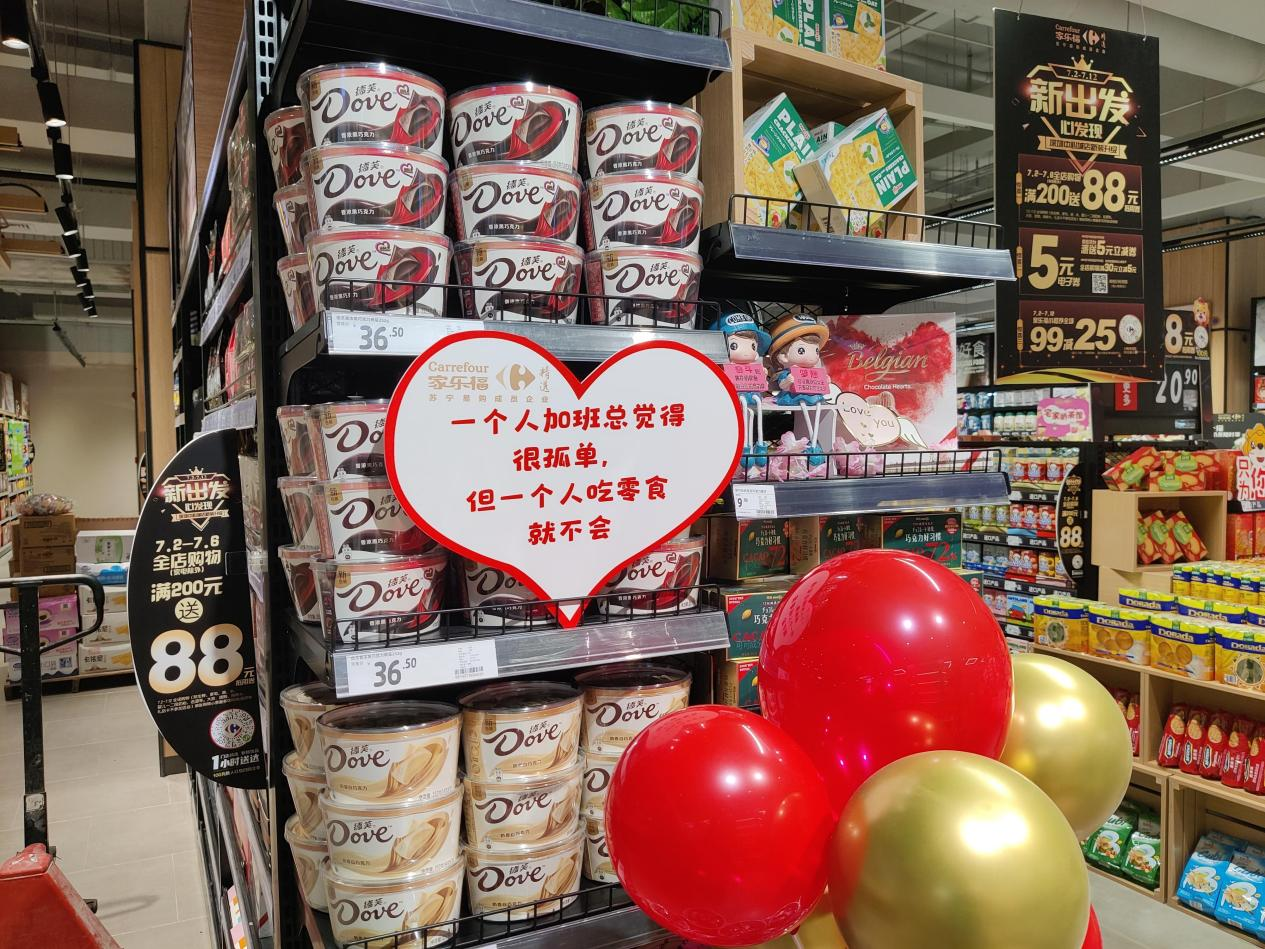 借著盛大開業(yè)的東風(fēng),家樂福社區(qū)品質(zhì)中心店推出了“優(yōu)品物語”的趣味逛店活動(dòng)。該活動(dòng),在原本干巴巴的價(jià)格指示牌下面增加了諸如,“一個(gè)人吃飯很孤單,但一個(gè)人吃零食就不會(huì)”“隔壁的,你和卷心菜是什么關(guān)系?我是反內(nèi)卷菜系”“櫻桃:要我一口能讓你大紅”“藍(lán)莓:我還爆漿!能讓你大紫”等“Z世代”語言,吸引大家來發(fā)掘逛超市的趣味。不但年輕的小情侶可以在下班后默契地相視一笑,也吸引到小紅書的博主們競相探店打卡。既賦予了購物一點(diǎn)有趣和人性化,也給這屆年輕人動(dòng)輒發(fā)圈、種草的社交型消費(fèi)加點(diǎn)料。