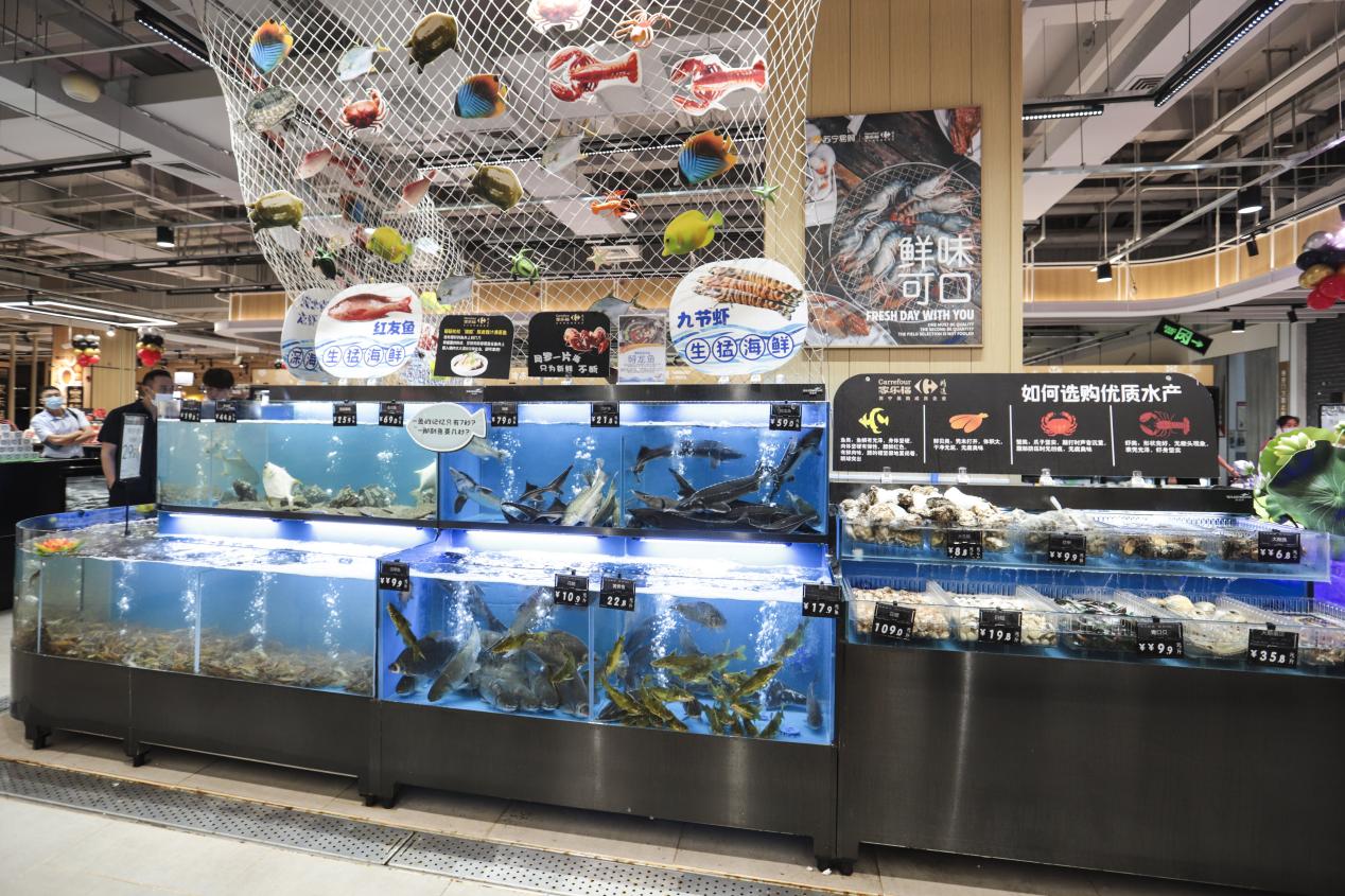 家樂福社區(qū)品質(zhì)生活中心經(jīng)營面積約3000㎡,主打中高端、進(jìn)口、網(wǎng)紅商品,門店有近15000種商品。