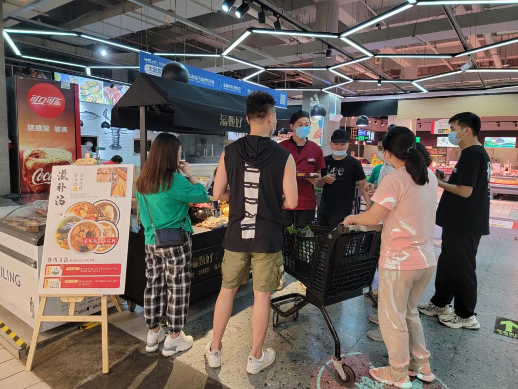 記者走訪深圳保利家樂福發(fā)現(xiàn),新上市的湯甄好專柜內(nèi)人頭涌涌,在售的各類半成品湯十分熱銷。主打滋陰養(yǎng)顏的紅棗北芪燉乳鴿湯、主打安神助眠的失眠安神湯、主打補血益氣的紅棗桂圓燉烏雞湯、主打益智開竅的核桃燉竹絲雞湯、主打刷脂潤膚的花膠燉烏雞湯……各類半成品湯品種齊全,三十余種口味的湯品陳列成為了店內(nèi)十分搶眼的區(qū)域。