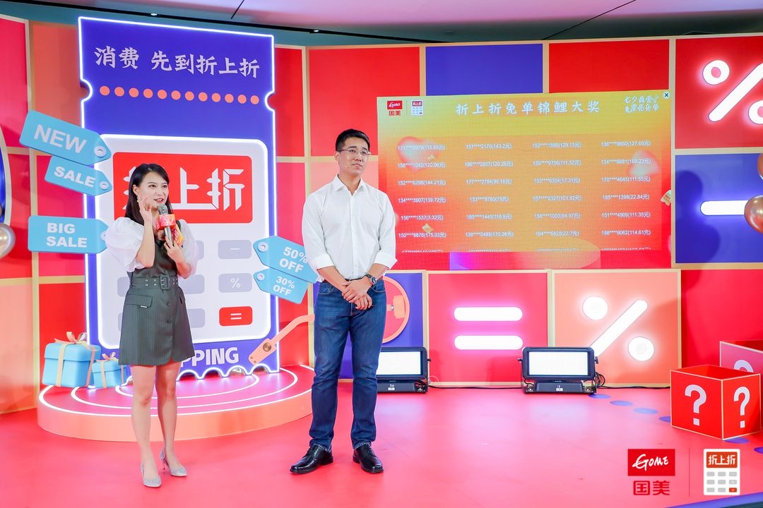 發(fā)布會(huì)最后,國(guó)美折上折平臺(tái)聯(lián)合“真快樂”平臺(tái)以直播方式進(jìn)行折上折券大放送,涉及品類眾多,卡券優(yōu)惠力度空前,期間持續(xù)進(jìn)行抽錦鯉活動(dòng),精彩不斷!