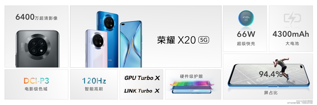 榮耀X20,120Hz超窄邊全面屏+66W超級(jí)快充
