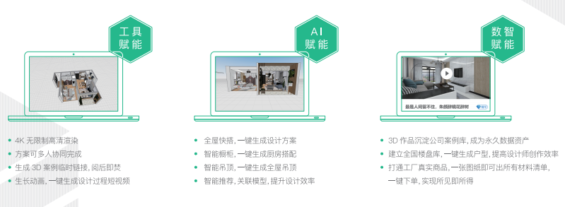 針對這一痛點(diǎn),圖滿意滲透了用戶從靈感搜集、量房簽約到施工選材的全流程,為裝企提供從獲客到簽單的全鏈路賦能。同時(shí),圖滿意正在打造集樓盤庫、案例庫、方案庫與商品庫于一體的智能設(shè)計(jì)系統(tǒng),搭建圖滿意場景化銷售平臺以及運(yùn)營體系,助力裝企實(shí)現(xiàn)一站式銷售。
