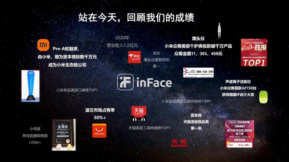 據了解, inFace創(chuàng)立于2017年6月21日,經過近1年籌備,2018-2020年完成了第一個“三年計劃”,即實現成為行業(yè)有代表和開創(chuàng)性“產品型公司”的戰(zhàn)略目標。在這期間,inFace發(fā)布原創(chuàng)產品12款+,年營收超1億元,同時完成由小米集團、順為資本領投的數千萬元Pre-A輪融資,正式加入小米生態(tài)鏈。在小米有品、天貓和京東等國內主流電商平臺上,核心類目例如潔面儀、黑頭儀、直發(fā)梳、美膚儀和美容儀等產品,inFace都是TOP級商家。