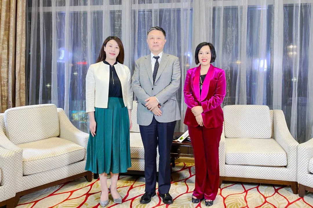 蘇州金合盛控股有限公司黨委書記、副董事長(zhǎng)、總經(jīng)理周瓊芳(左一);深圳市金融商會(huì)產(chǎn)業(yè)戰(zhàn)略顧問(wèn)、深圳市共享金融研究院執(zhí)行院長(zhǎng)(中);深圳市金融商會(huì)執(zhí)行會(huì)長(zhǎng)朱雪櫻(右一)