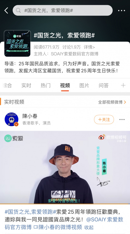 讀特客戶端·深圳新聞網(wǎng)2021年10月22日訊(記者 田志強(qiáng))近日,索愛廣州25周年慶領(lǐng)跑活動(dòng)在網(wǎng)絡(luò)持續(xù)發(fā)酵,引爆輿論熱烈關(guān)注。作為音頻數(shù)碼行業(yè)首個(gè)登錄廣州塔的國貨品牌,索愛25周年領(lǐng)跑活動(dòng)吸引了大量的媒體和達(dá)人齊聚廣州塔,索愛品牌和產(chǎn)品熱度以廣州為中心迅速向周邊地域傳播。在索愛冠名高鐵、簽約陳小春夫婦為品牌形象大使等品牌事件的疊加聚合效應(yīng)下,#國貨之光,索愛領(lǐng)跑#等話題和熱度持續(xù)傳播至各社交平臺(tái),各個(gè)類別KOL相繼為索愛發(fā)聲,僅在微博平臺(tái)的話題閱讀量已突破數(shù)千萬。