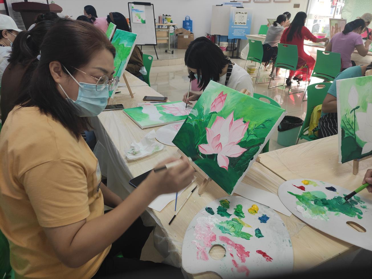 全職媽媽,這個(gè)平凡而偉大的群體,操持家務(wù)、陪伴孩子、全年無(wú)休,為此犧牲了自己的興趣愛(ài)好,交際圈、經(jīng)濟(jì)收入。大汪山社區(qū)關(guān)注媽媽身心健康,以“油畫”搭建平臺(tái),為全職媽媽們創(chuàng)造減壓、專注、有趣的“個(gè)人時(shí)間”。在這里,媽媽們暫時(shí)放下孩子的作業(yè)、未洗的衣服、未做的晚飯,專注于和畫筆、顏料、畫友相處的時(shí)間:油畫基礎(chǔ)、畫面結(jié)構(gòu)、色彩調(diào)配、色彩層次……